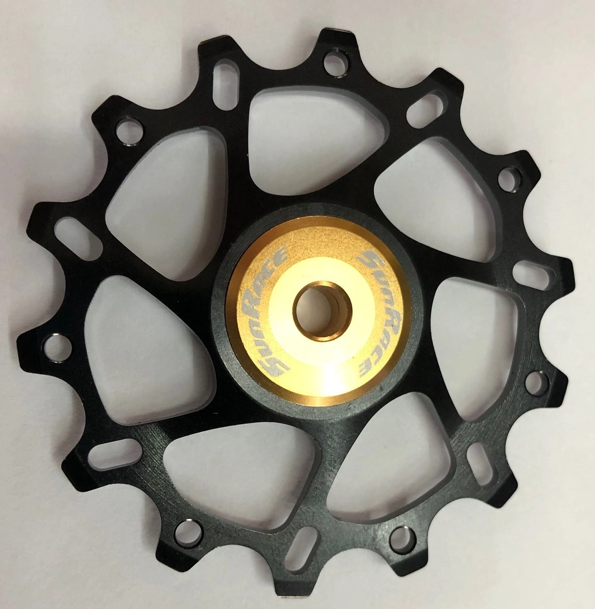 Cnc Sunrace SP864 Schaltwerksrolle Alu Gefräst Schwarz/gold 14Z (1 Stück) [19304]